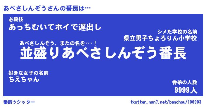 | 肩書あだ名 | 『あべさしんぞう社長』 |
