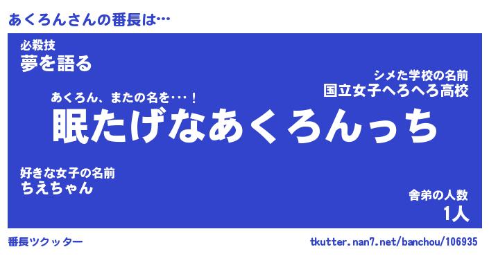 | 意味不明あだ名 | 『ペロリンあくろん』『永久保存あくろん』 |