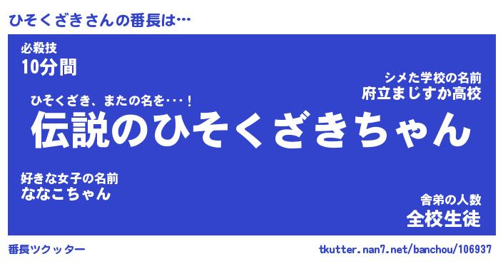 | ヒーロー風カッコイイあだ名 | 『スーパーヒソクザキ』『幻影騎士ヒソ』 |