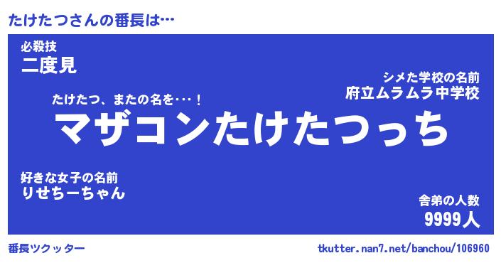 | 意味不明あだ名 | 『ペロリンたけたつ』『永久保存たけたつ』 |