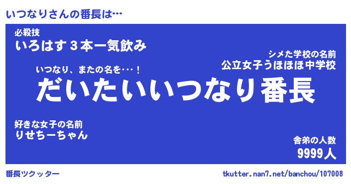 | 意味不明あだ名 | 『ペロリンいつなり』『永久保存いつなり』 |