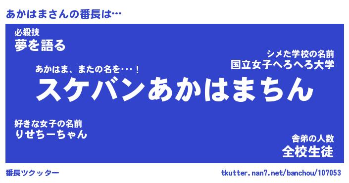 | ヒーロー風カッコイイあだ名 | 『スーパーアカハマ』『暗黒騎士アカ』 |