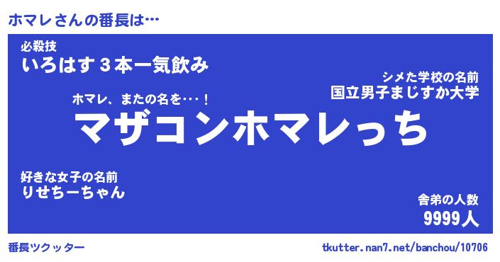 | 伝説のあだ名 | 『封印されしスナイパーホマレ』 |