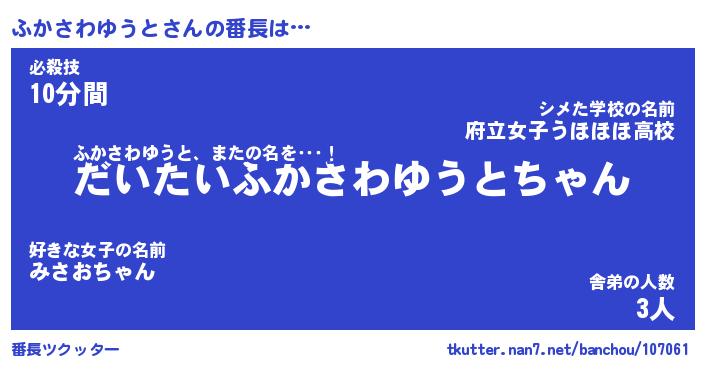 | ヒーロー風カッコイイあだ名 | 『スーパーフカサワユウト』 |