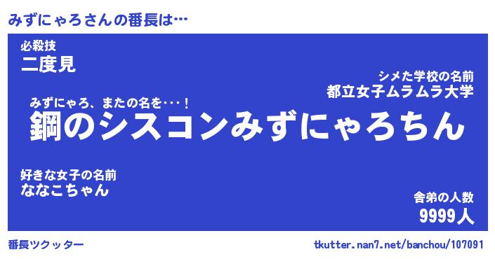 | 肩書あだ名 | 『みずにゃろ社長』『みずにゃろ総理大臣』 |