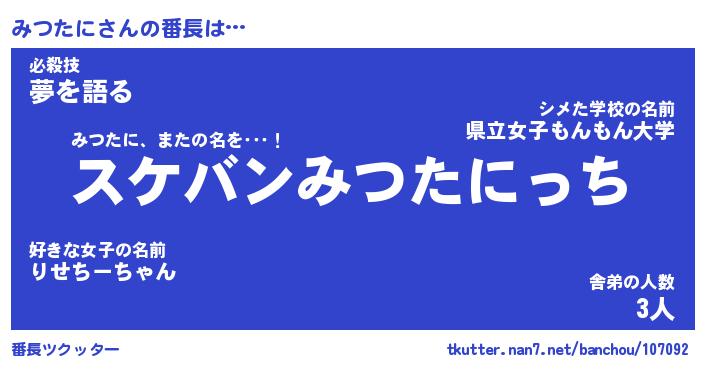 | 肩書あだ名 | 『みつたに店長』『みつたに国家主席』 |