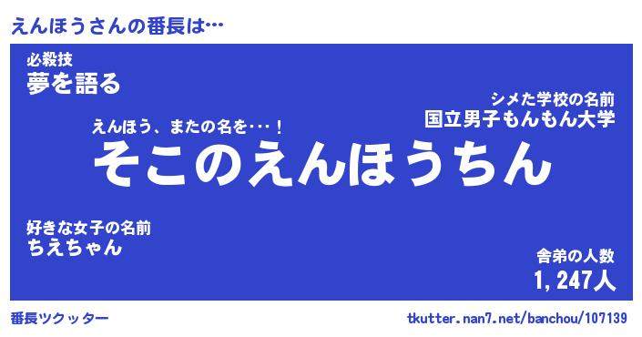 | ヘコむあだ名 | 『えんにゅー』『豆乳』『えんぷりん』 |