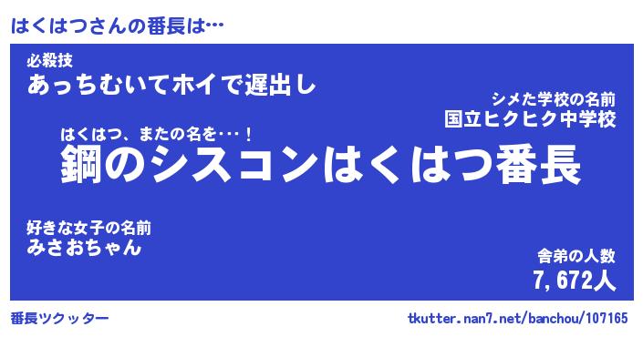 | ファンタジー風あだ名 | 『ハクフェル』『エターナルハクハツー』 |