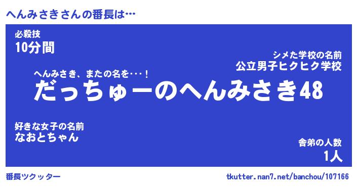 | ヘコむあだ名 | 『へんにー』『牛乳』『へんお』 |