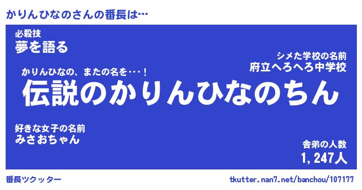 | 男性向けラノベタイトル風あだ名 | 『かりんひなのの憂鬱』 |