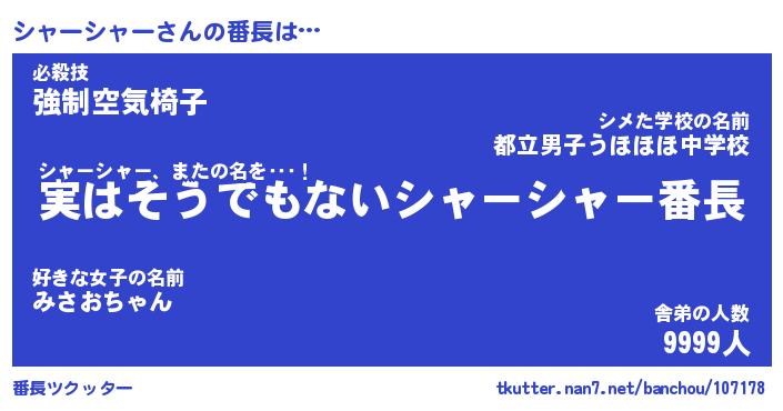 | ヒーロー風カッコイイあだ名 | 『スーパーシャーシャー』『炎刃騎士シャ』 |