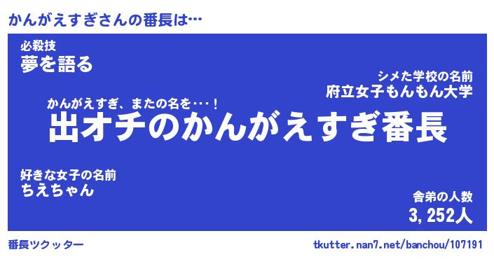| 肩書あだ名 | 『かんがえすぎ店長』『かんがえすぎ団長』 |