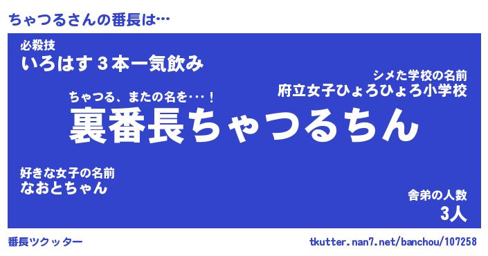 | ヒーロー風カッコイイあだ名 | 『スーパーチャツル』『魔戒騎士チャ』 |