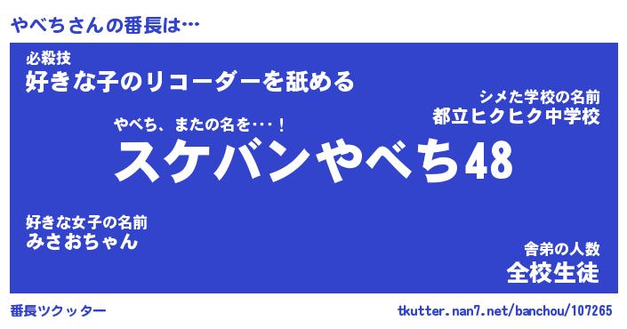 | 意味不明あだ名 | 『ペロリンやべち』『やべちフォーエバー』 |