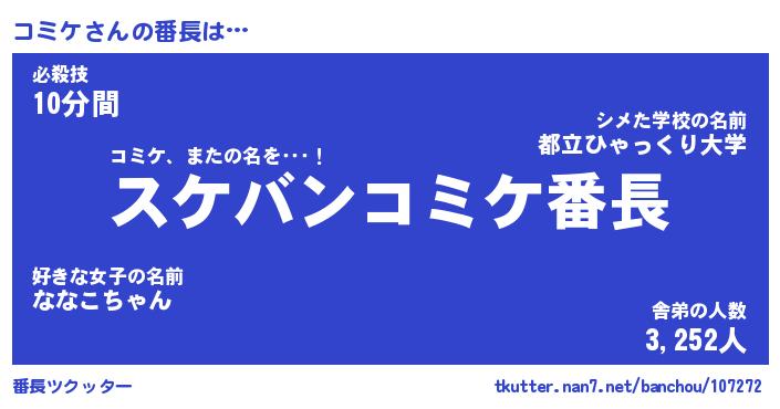 | ピコ太郎風あだ名 | 『ココ十郎』『ピコ八郎』『コミ五郎』 |