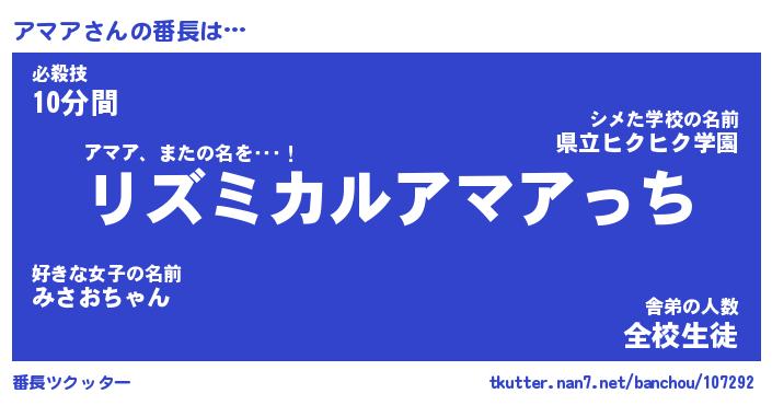 | ヒーロー風カッコイイあだ名 | 『スーパーアマア』『ウルトラアマアマン』 |