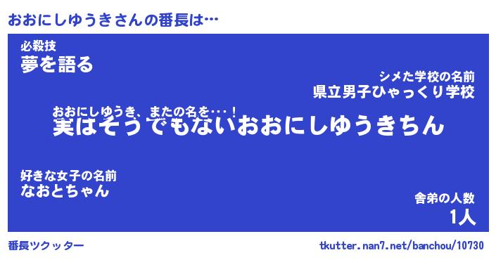 | 恥ずかしいあだ名 | 『プリティーおおにしゆうき』『おおちん』 |