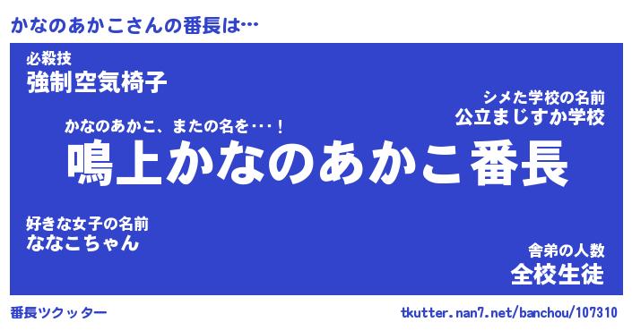 | ヘコむあだ名 | 『かなもー』『つくし』『かな太郎』 |