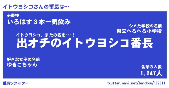 | ヘコむあだ名 | 『イトにー』『なまこ酢』『イトっぺ』 |