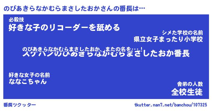 | ツイッター | のびあきらなかむらまさしたおかさんのツイッターID『katatsumuri_nyan』 |