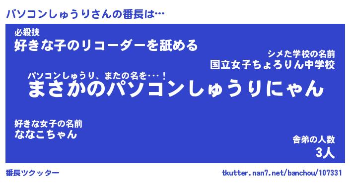| 伝説のあだ名 | 『伝説のスナイパーパソコンしゅうり』 |