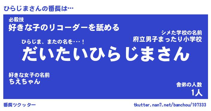 | 肩書あだ名 | 『ひらじま社長』『ひらじま国家主席』 |