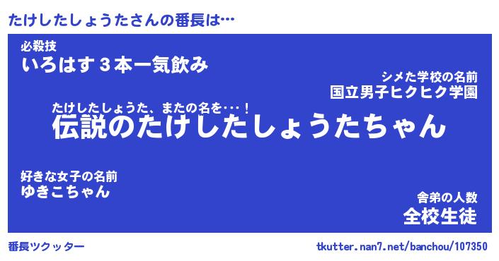 | 意味不明あだ名 | 『ペロリンたけしたしょうた』 |