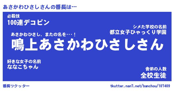 | ヘコむあだ名 | 『あさにー』『つくし』『あさっぺ』 |