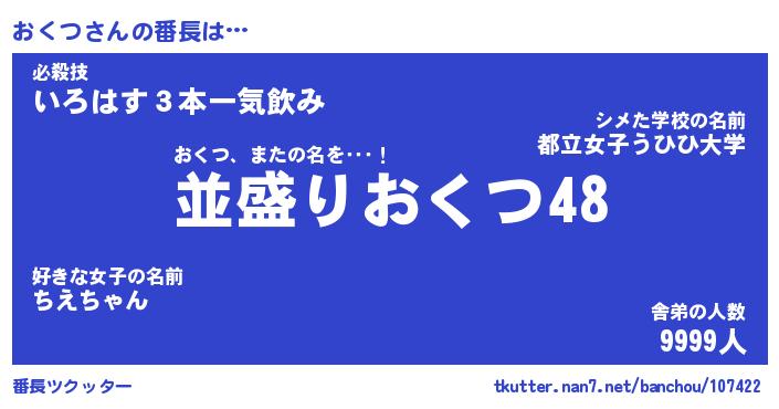 | ヘコむあだ名 | 『おくっふぃ~』『なまこ酢』 |