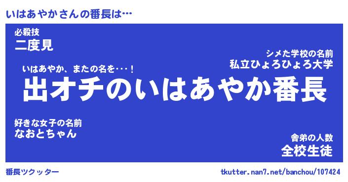 | ファンタジー風あだ名 | 『イハフェル』『エターナルイハアヤカー』 |