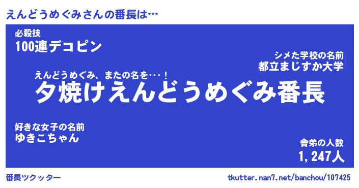 | ヘコむあだ名 | 『えんにー』『つくし』『えんぷりん』 |