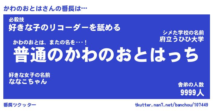 | ポケモン風あだ名 | 『カワチュウ』『カワノダネ』 |
