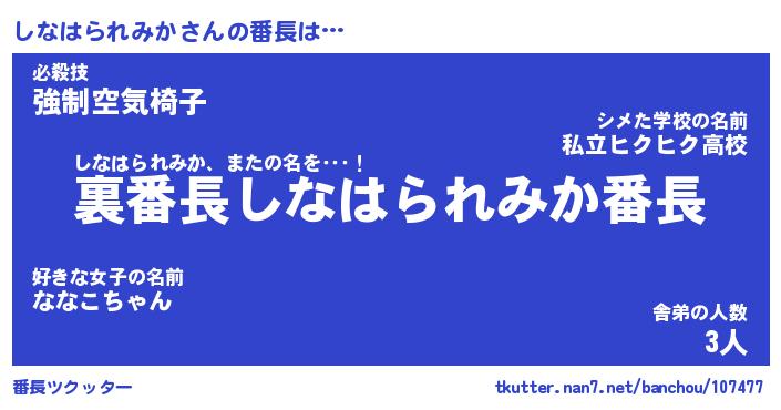 | ヒーロー風カッコイイあだ名 | 『スーパーシナハラレミカ』 |