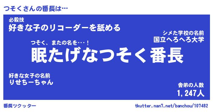 | ヘコむあだ名 | 『つそもー』『酢こんぶ』『つそっぺ』 |