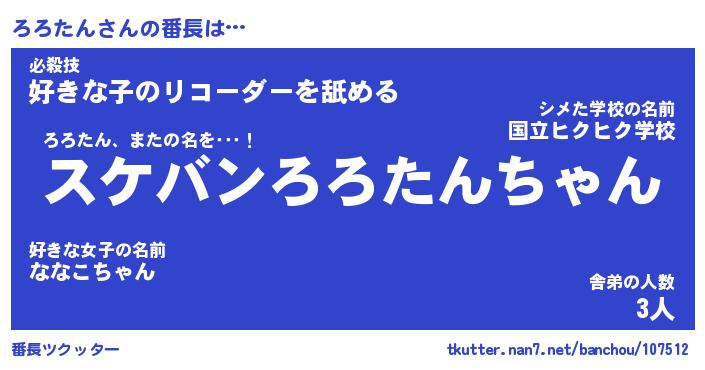 | ヘコむあだ名 | 『ろろにー』『なまこ酢』『ろろっぺ』 |