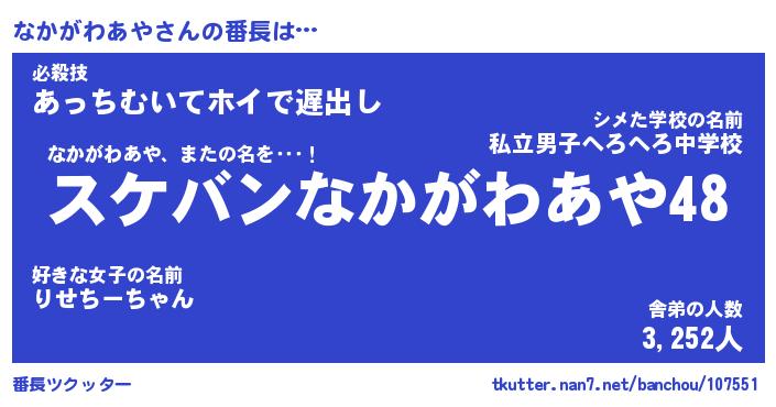 | 恥ずかしいあだ名 | 『プリティーなかがわあや』『なかっちょ』 |