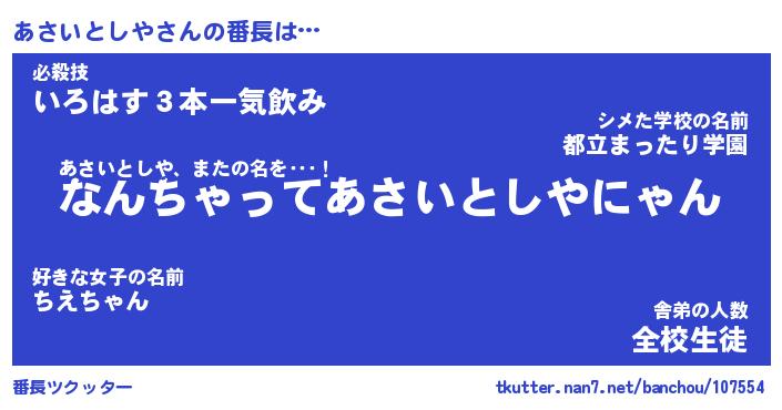 | ヒーロー風カッコイイあだ名 | 『スーパーアサイトシヤ』『暗黒騎士アサ』 |