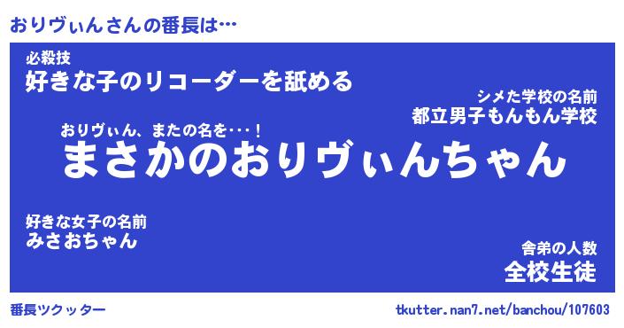 | 肩書あだ名 | 『おりヴぃん社長』『おりヴぃん国家主席』 |