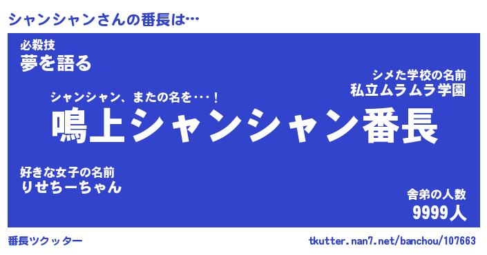 | 肩書あだ名 | 『シャンシャン店長』『シャンシャン塾長』 |