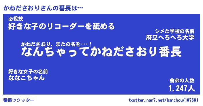 | 肩書あだ名 | 『かねださおり御曹司』 |