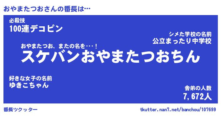 | ヒーロー風カッコイイあだ名 | 『スーパーオヤマタツオ』『炎刃騎士オヤ』 |
