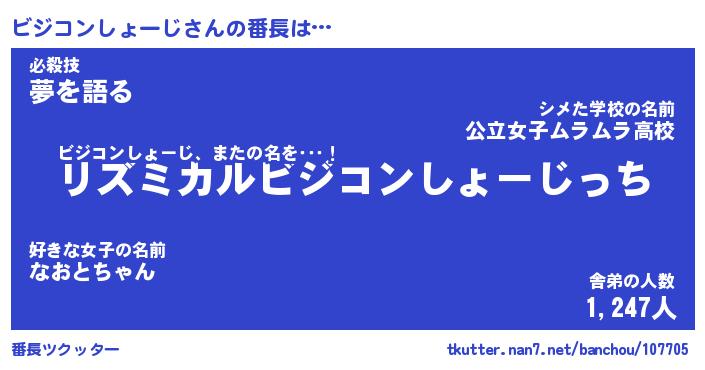 | 伝説のあだ名 | 『伝説のスナイパービジコンしょーじ』 |