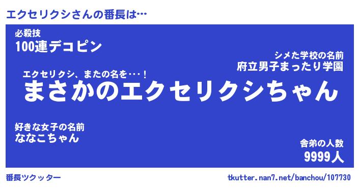 | ヒーロー風カッコイイあだ名 | 『スーパーエクセリクシ』『黄金騎士エク』 |