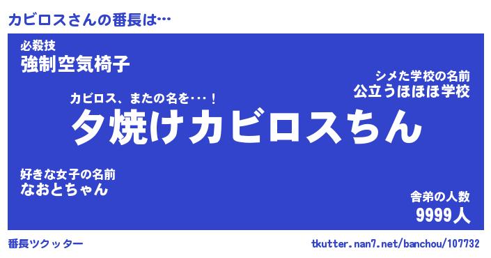 | 伝説のあだ名 | 『封印されしスナイパーカビロス』 |