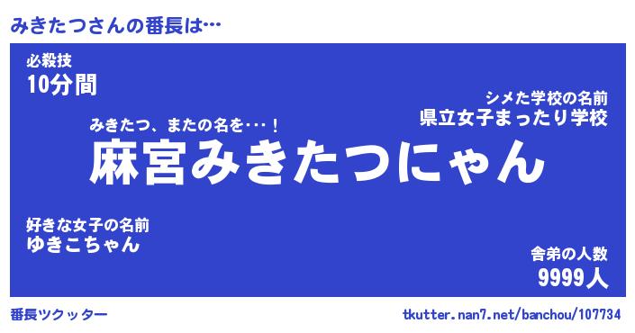 | 意味不明あだ名 | 『ペロリンみきたつ』『永久保存みきたつ』 |