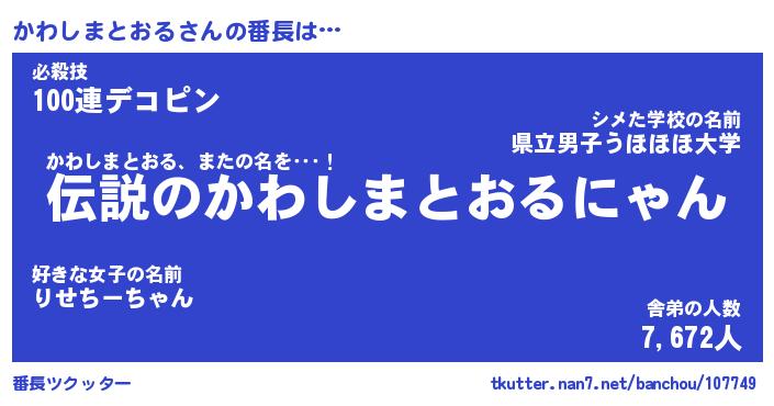 | ヒーロー風カッコイイあだ名 | 『スーパーカワシマトオル』 |