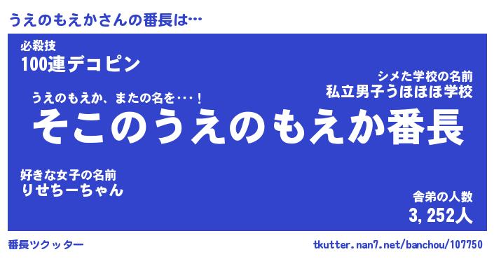 | 肩書あだ名 | 『うえのもえか御曹司』 |