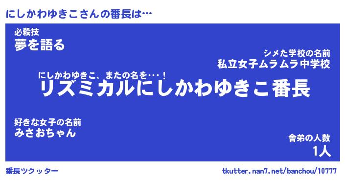 | ヘコむあだ名 | 『にしもー』『豆乳』『にし太郎』 |