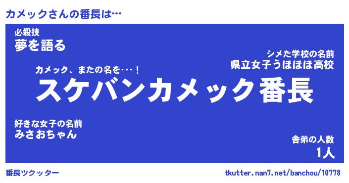 | ヒーロー風カッコイイあだ名 | 『スーパーカメック』『黄金騎士カメ』 |