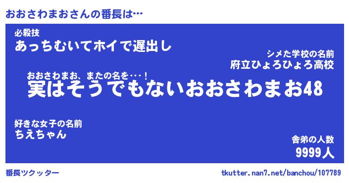 | 伝説のあだ名 | 『封印されし傭兵おおさわまお』 |